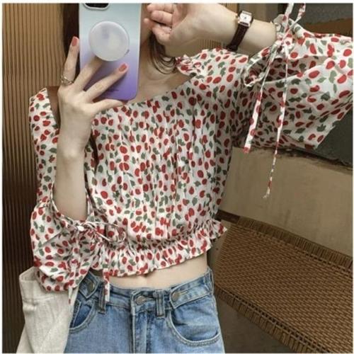 [엄지척]러블리 앵두패턴 크롭기장 스퀘어넥 블라우스_19643544_667501