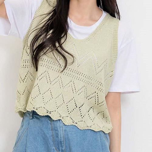 [셀럽하우스]여성 EYGA3636 여름 크로셰 브이넥 뜨개 조끼 베스트