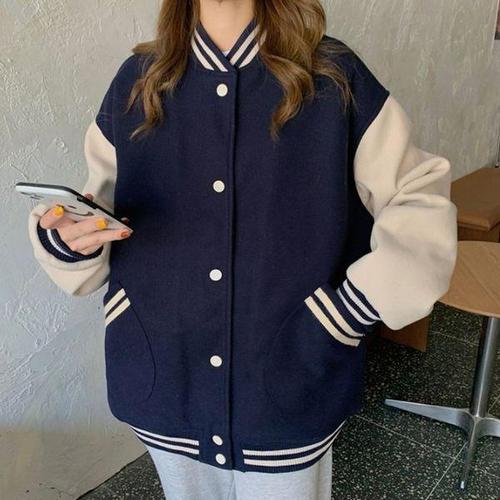 [에이치플러스몰]스포티 여성 야구점퍼 배색 야구잠바 오버핏 자켓 여성점퍼 여자점퍼