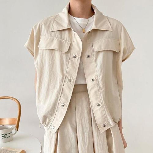 여자 나일론 버튼 카라 사파리 봄여름 조끼