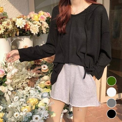 [엄지척]여성 와플 후드 루즈핏 얇은 여자 후드티셔츠_19613136_667501