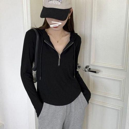 구디프 여성용 봄 가을 간절기 긴팔 지퍼 슬림핏 베이직 데일리룩 후드티