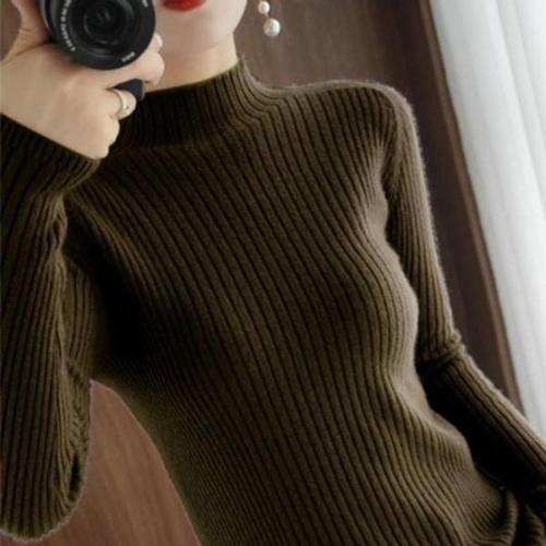 [엄지척]여자 하프넥 니트 얇은 슬림 무지 반목 반폴라_19677684_667501
