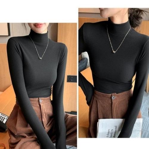 데일리 여성용 목폴라티 빅사이즈 슬림핏 여성 얇은 반폴라티 가을 겨울 여자 이너 상의 LZH