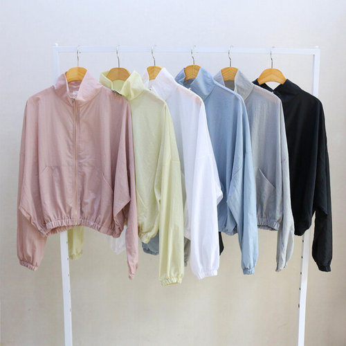 [옷자락]여성 얇은 바람막이 크롭 루즈핏 집업