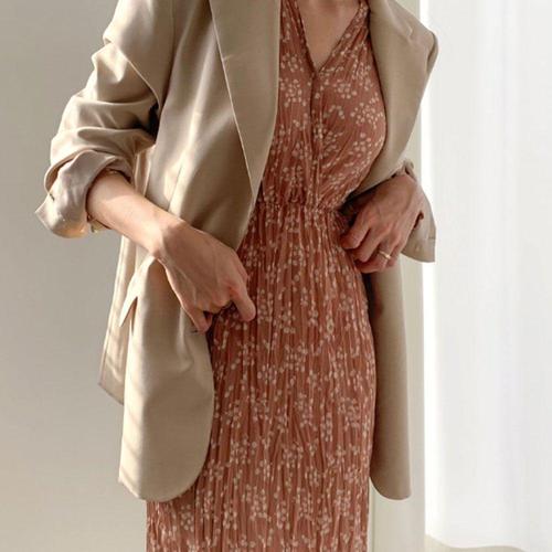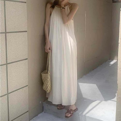[셀럽하우스]핀턱 FOUW9950 얇은 롱원피스 민소매 A라인 군살커버