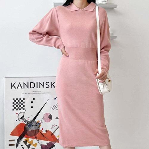 [셀럽하우스]카라 WRUG1516 롱 원피스 환절기 간절기 니트 얇은 웨딩룩