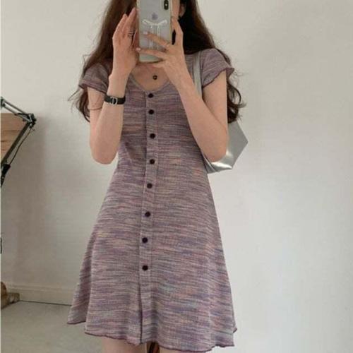 [셀럽하우스]미니 SKAK1292 A라인 스커트 원피스 캐주얼 얇은 반팔 슬림 스