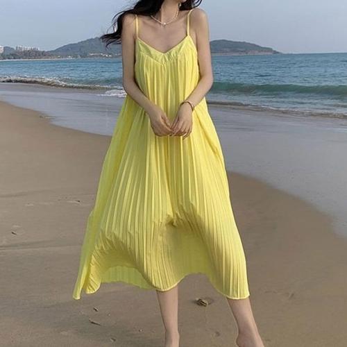[엄지척]플리츠 나시 브이넥 얇은 끈 롱기장 a라인_19910652_667501