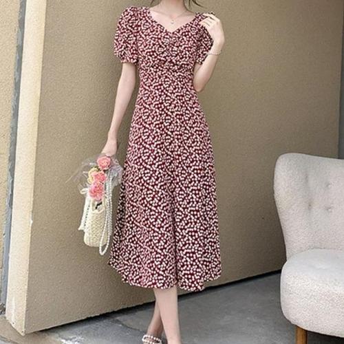 [엄지척]여자 봄여름 외출 빨간색 얇은 반팔 롱원피스_19913269_667501