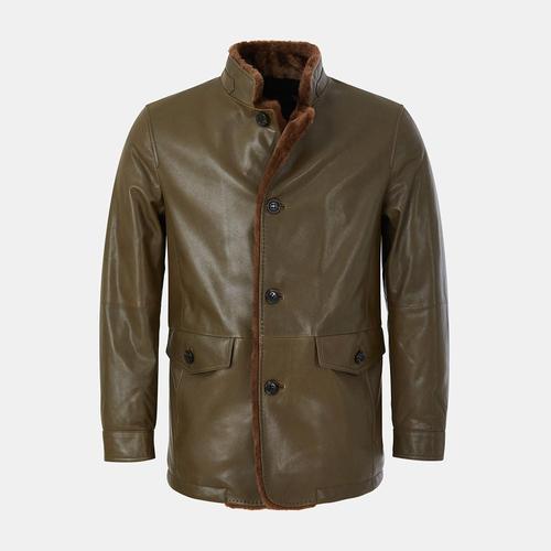 [바쏘옴므]양가죽 자켓 이태리 차이나카라 구스다운 가죽 점퍼 브라운 Z4UB13-2