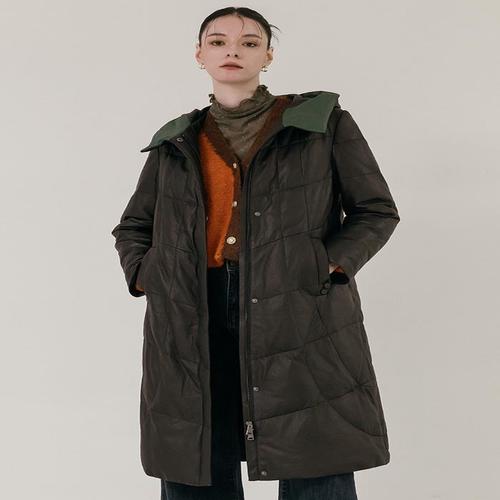 [막스까르띠지오][양가죽/구스다운]프리미엄 롱 레더 후드 점퍼