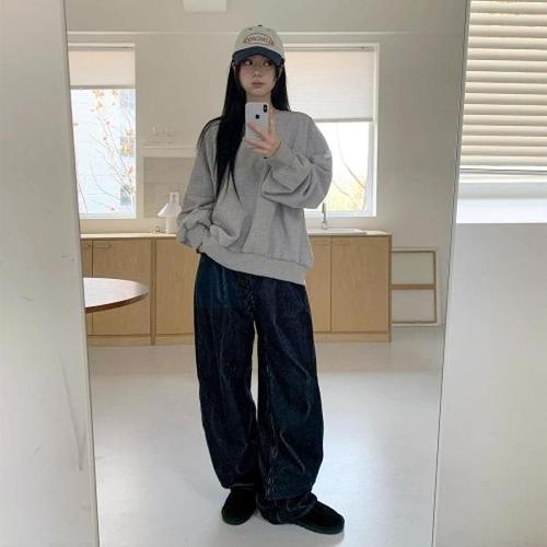 양기모 프린팅 오버핏 맨투맨 티셔츠 긴팔 라운드넥 여성 빅사이즈