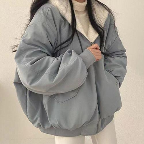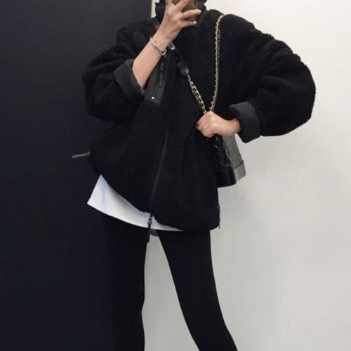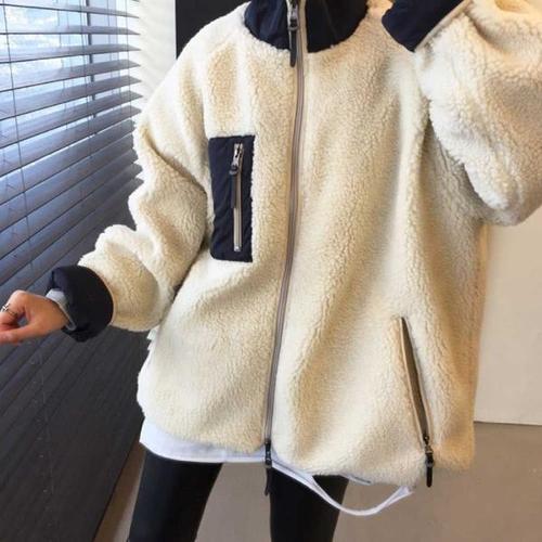 ROYALBELLE 여성 양면 플리스 집업 하이넥 루즈핏 패션 긴팔 보온 자켓 V090513