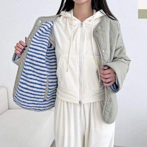 [모노무드]LMO REN 여성용리버시블 울소재 플리스 스탠다드 줄무늬 양면소재 집업