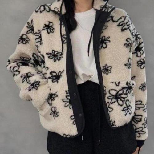 [셀러허브_여성트랜드패션]여성 크롭핏 꽃무늬 뽀글이 양면 플리스 자켓