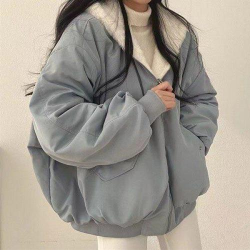 [셀러허브_여성트랜드패션]투웨이 지퍼 블루종 뽀글이 점퍼 양면 오버핏