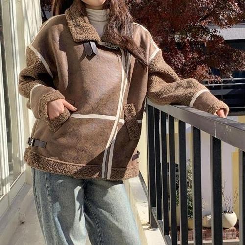 ANYOU 귀여운 양털 카라 스웨이드 무스탕 자켓 루즈핏 데일리 캠퍼스룩 겨울 아우터