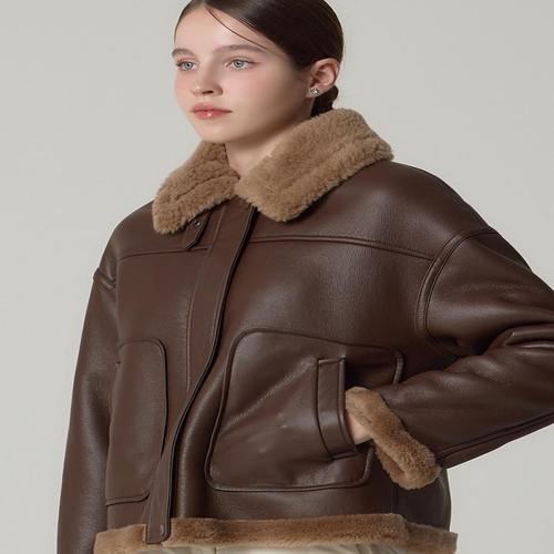 [최초가590,000]시그니처 크랙 레더 양모 시어링 리얼 무스탕_SOJK251106