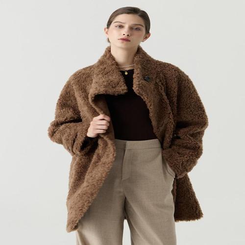 [무드무드] [양모100%] 먼데이 시어링 하이넥 코트