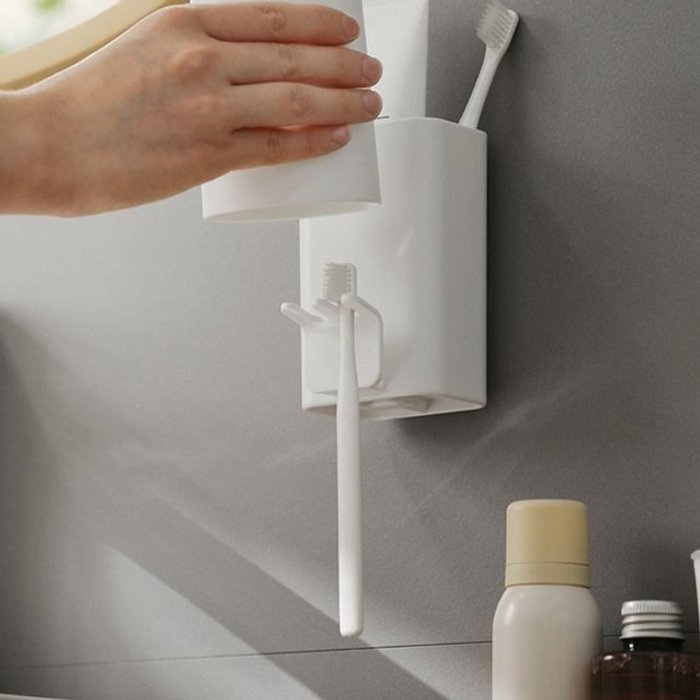 조아리빙 치솔걸이 거치대 양치컵 칫솔 거치대 무타공 칫솔걸이 벽걸이 겸용