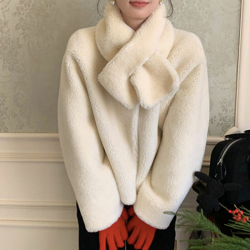 [무드무드] [양모100%] 노이 양털 머플러 시어링 코트 set