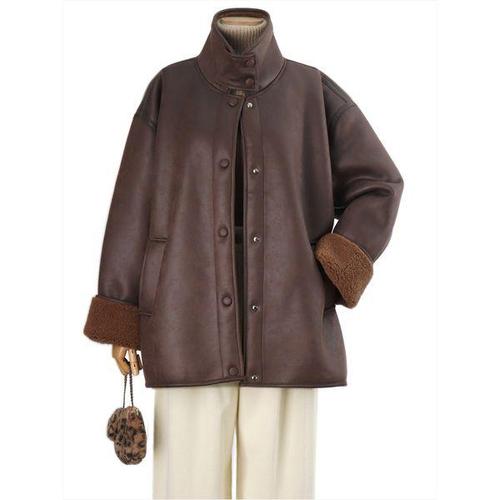 네오 민트 2025 겨울 루리코어 패션 브라운 인조 모피 코트 여성 시크 가을 따뜻한 플러피 양털 재킷 큰 모피 칼라 오버코트