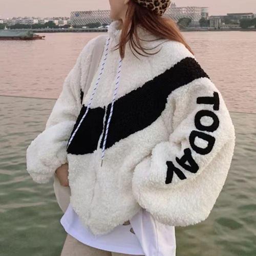 겨울스타일 배색 여성 뽀글이 집업 플리스 후리스 양털 점퍼 패딩 (WFK9K3Y)