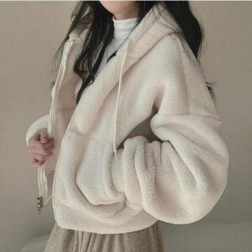 HL] 크롭티 후드집업 여성 겨울 양털 세미 아우터