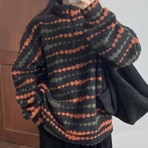 집업 양털 여성 점퍼 스포티 하프넥 배색 라인 여성야 WFLQC9W