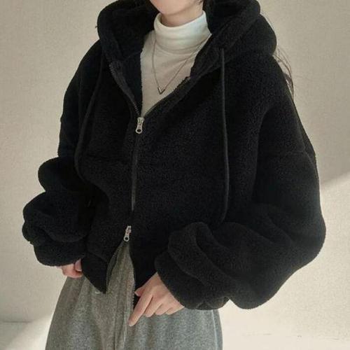 [셀러허브_여성트랜드패션]여성 세미크롭 양털 아우터 여성점퍼 퍼 겨울아우터 겨울 후드집업