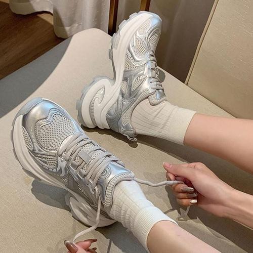 [애슬릿] 여성 레이스업 메쉬 어글리 슈즈 키높이 운동화