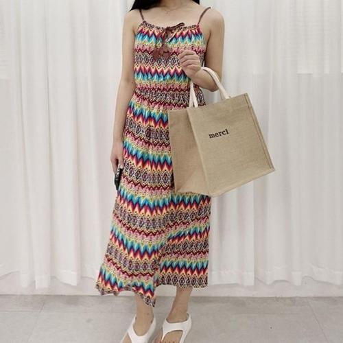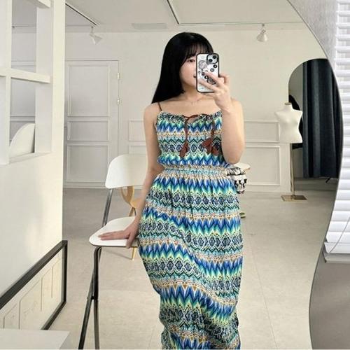 [엄지척]여름 휴가 바캉스룩 시원한 어깨끈 패턴 롱 원피스_19910398_667501