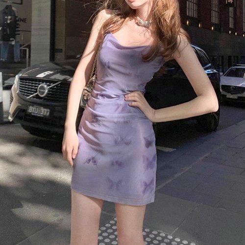 [다잇템]여자 소프트핏 나비패턴 어깨끈 쁘띠 원피스