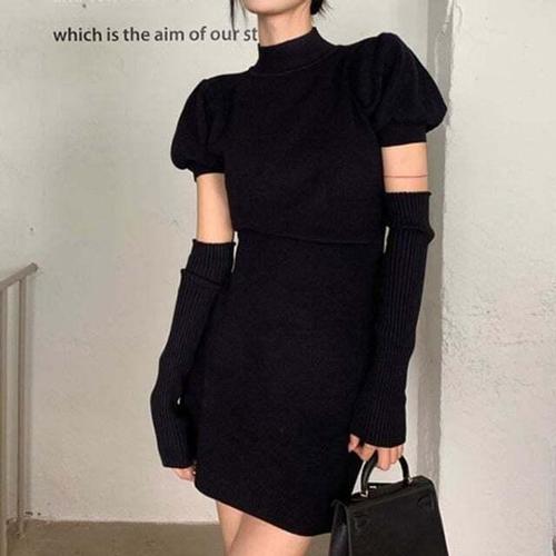 [XBI8JLJO]어깨 토시 셔링 워머 원피스 니트 미니원피스