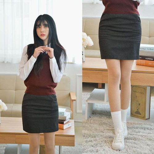 [셀럽하우스]교복 SRRI2608 스판 교복몰 스커트 코코아 교복치마