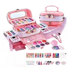 소녀를위한 어린이 메이크업 키트 공주 진짜 빨 수있는 척 놀이 화장품 세트 거울이있는 장난감 무독성 및 안전한 생일 선물