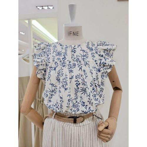 (빠른배송) 휴양지블라우스 나시블라우스 여성나시블라우스 여성 데이트룩 민소매 여름 셔링 블라우스