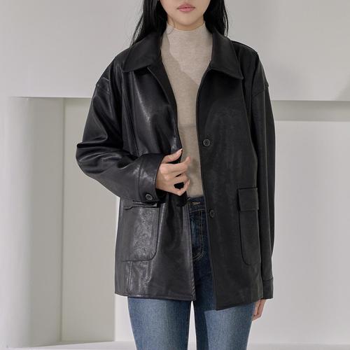 [로즈미] [55~77] 어썸 하프 오버핏 비건 레더 자켓