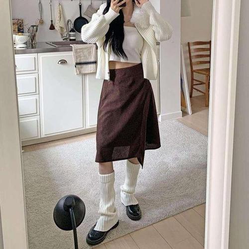 여성용 정장 스커트 추동 셔링 블링 언밸런스 랩 모직 KS4