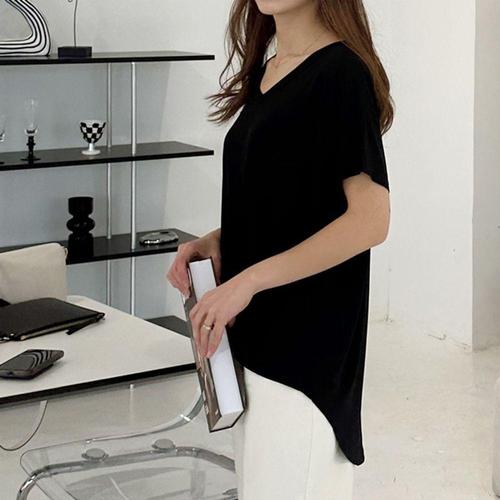 [셀럽하우스]무지 RYCZ9268 반팔 언발 롱 티셔츠