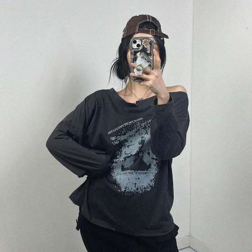 [셀럽하우스]언발오프숄더 XFJA4850 골드체인 빈티지 루즈핏 긴팔티 2SIZE