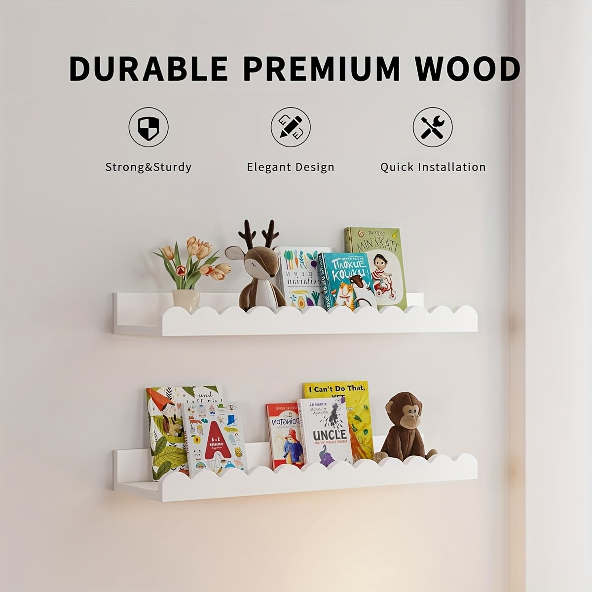 TEMU 다기능 화이트 책장, 벽걸이형 화이트 선반 2개 세트, 팬 모양 책장, 거실 및 침실용 벽 선반, 다양한 방 유형에 적합, 벽 수납 선반, 방 꾸미기, 플로팅 선반