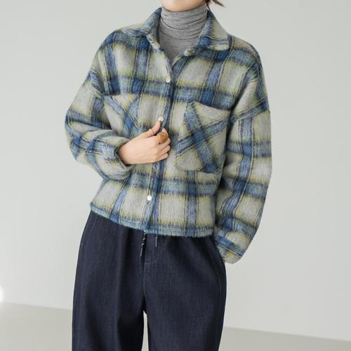 [드리다]여성 겨울 잔체크 카라 빅사이즈 정장 울 자켓 40-50대 미시 중년여성 엄마옷 하객 상견례 모임