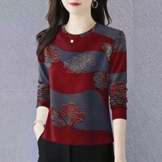 MOSAIRATION 여성 (1+1)2장묶음 패션 라운드넥 긴팔 티셔츠 배색 디자인 중년 엄마 이너 티셔츠 M0112128