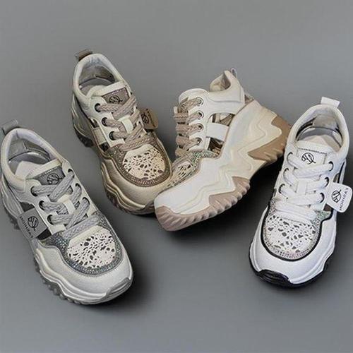 [옷자락]여성 키치스타일 레이스업 통굽 키높이 스니커즈
