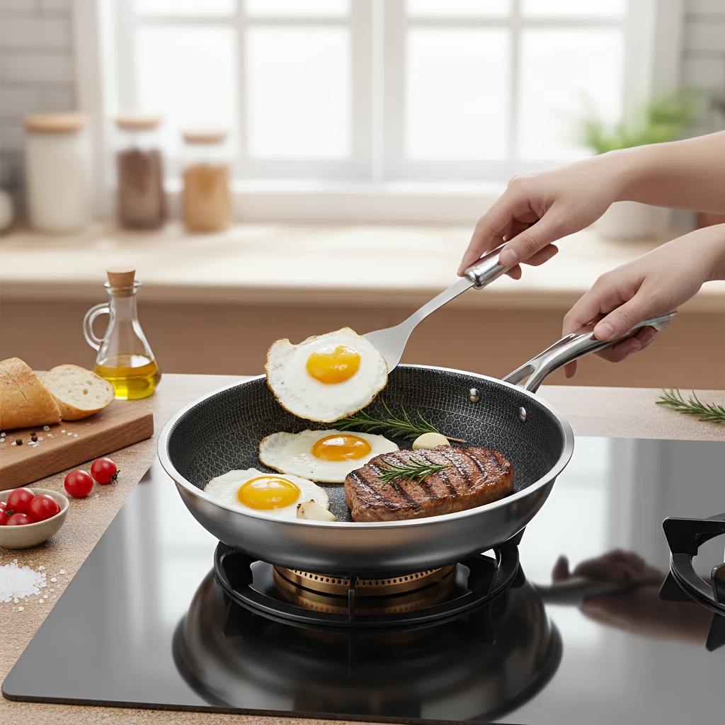 TEMU 스테인리스 스틸 410 벌집 모양 논스틱 프라이팬, 11.02인치 옵션, 인덕션, 가스레인지 사용 가능, 건강, 무코팅, 튀김, 볶음, 찜 요리 다용도 - 주방 필수품