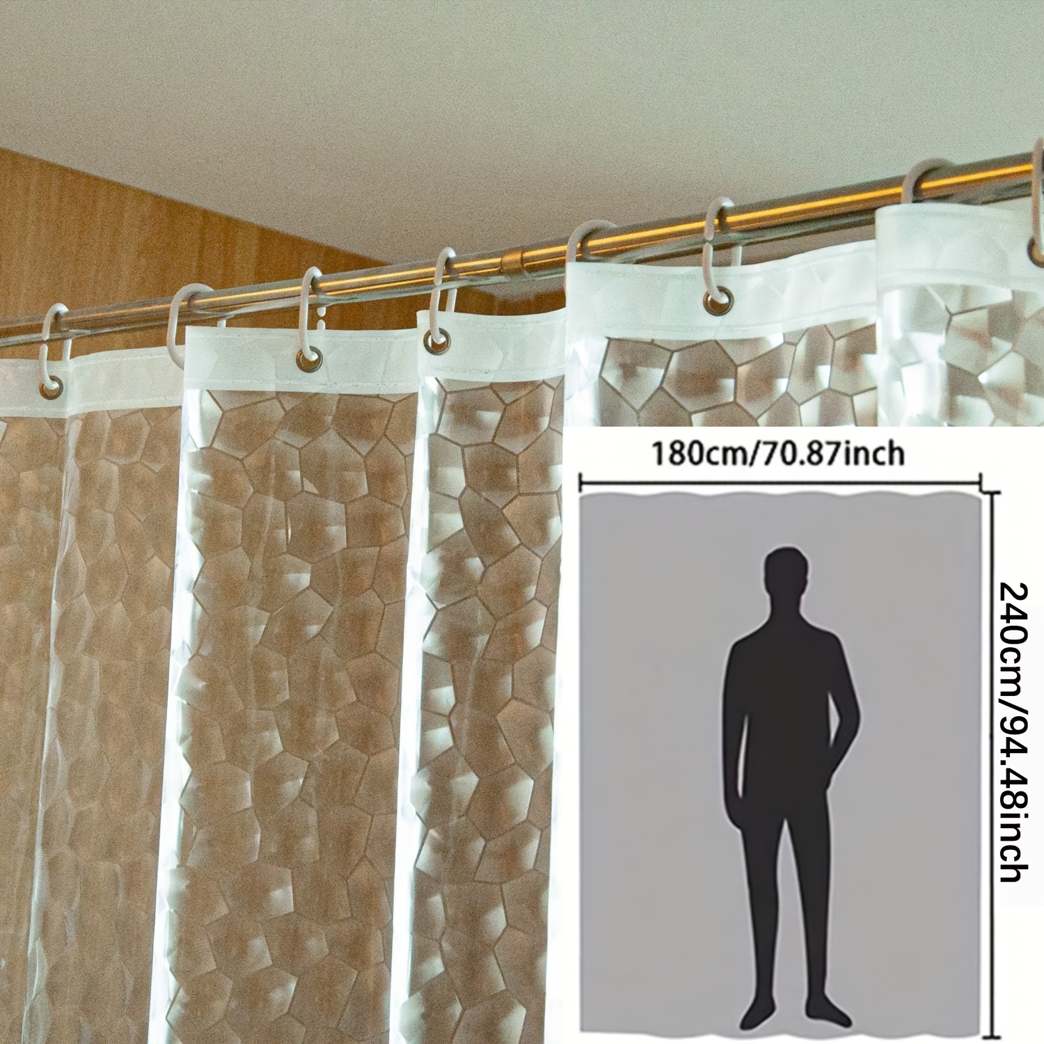 TEMU 1개 기하학적 모양 투명 워터 큐브 샤워 커튼 라이너, 고밀도 EVA, 두꺼운 플라스틱, 퇴색 방지, 안감 없음, 미술 테마, 비직물, 사계절용, 욕실 샤워 룸, 목욕탕, 호텔 기숙사 파티션 벽에 적합