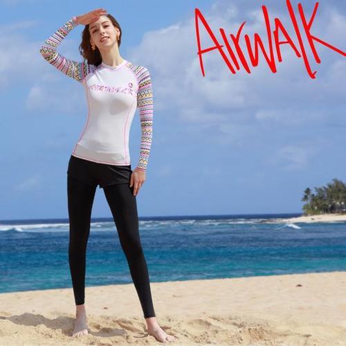 [에어워크]서프 여성래쉬가드세트 2피스 티셔츠+반바지레깅스 YAWe5208_WH+YAWe4105_BK