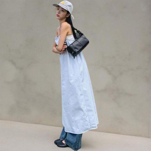 [다잇템]여성 에이라인 롱 스트랩 미니멀리즘 드레스